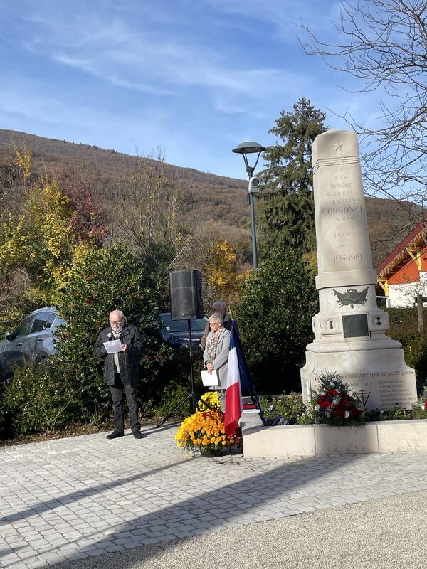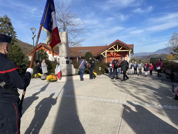 La cérémonie a débuté par le dépôt de gerbes au pied du monument, suivi de la lecture du message officiel du ministre des Armées. Les enfants de l’école ont ensuite t entonné la Marseillaise.