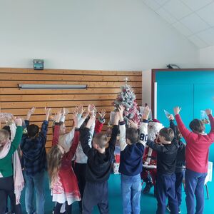 À l’occasion des fêtes de fin d’année, les enfants ont partagé un délicieux repas de Noël à la cantine, décorée pour l’événement.