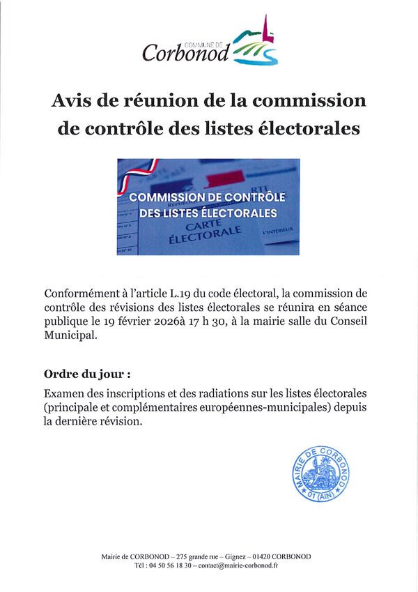 Avis de réunion de la commission de contrôle des listes électorales