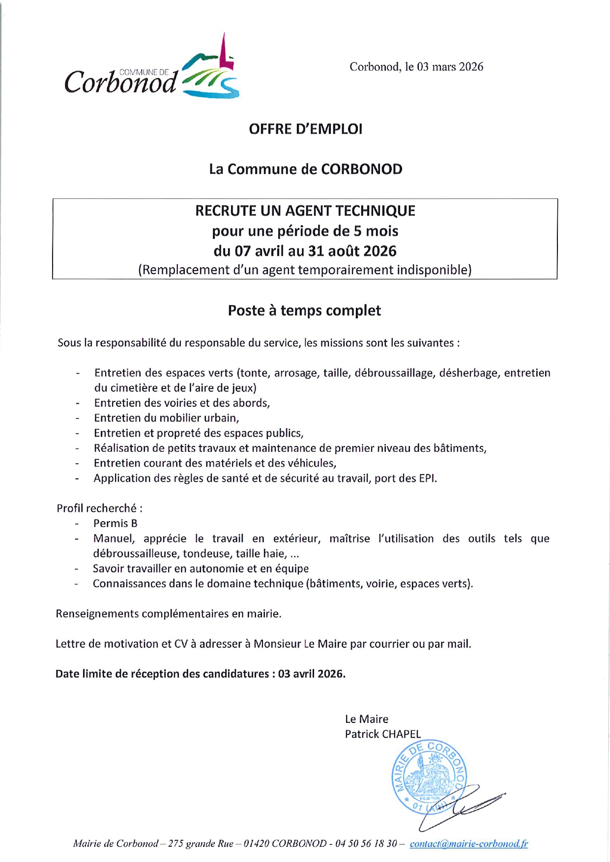 Offre d'emploi